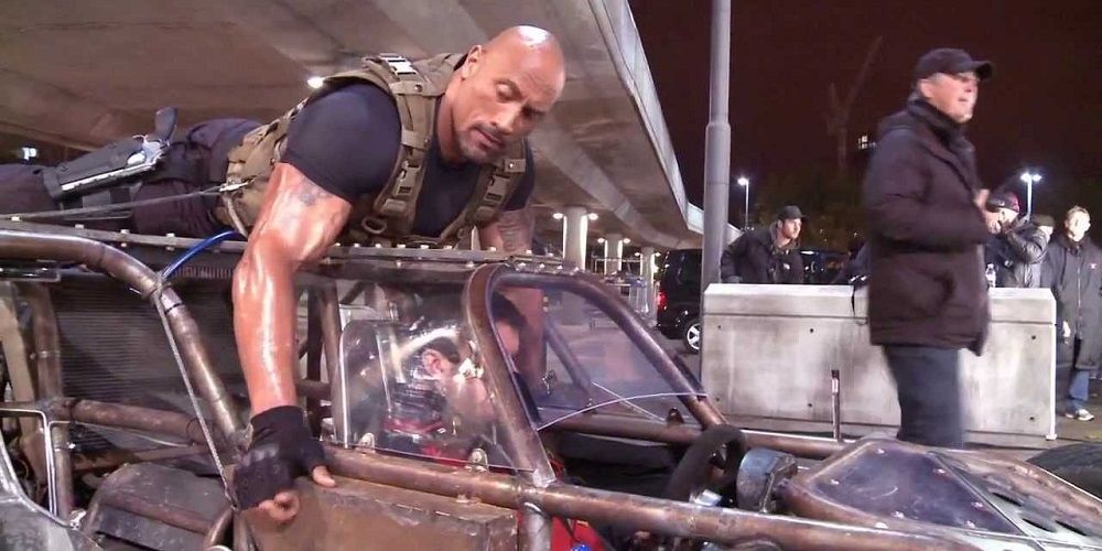 Um, it's not what it looks like. Unless it looks like Dwayne Johnson is in between takes for a stunt from Furious and Furious 6, in which case that is what is happening.