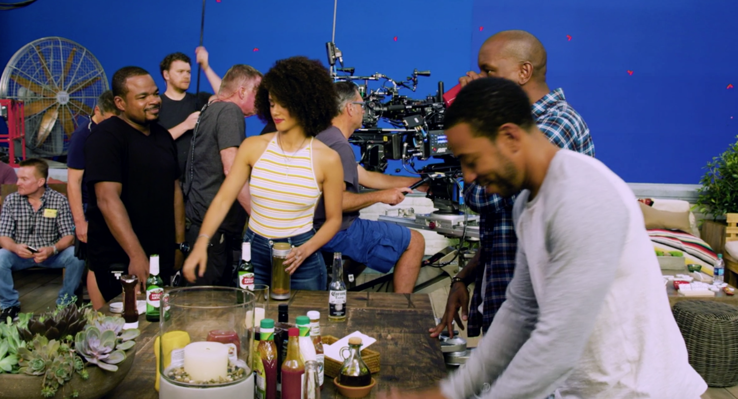 Presented here is a typical family barbecue on a warm sunny day; beer, copious amounts of food, condiments, loved ones, an enormous fan, movie cameras, and a blue screen. Okay, some of those are pretty atypical of what a regular cookout entails, but that does not mean the heart and spirit of the festivity is absent.