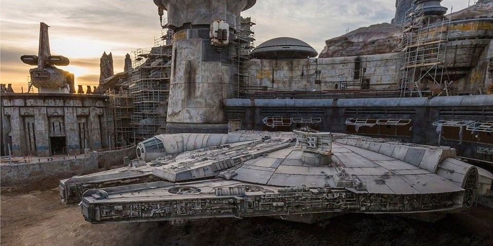 The first official image of Star Wars: Galaxy's Edge's Millennium Falcon attraction has emerged. First announced back in 2015, Galaxy's Edge is a forthcoming Star Wars-themed zone currently being built for both Disneyland, California and Walt Disney World, Florida. The parks are intended to give guests an utterly immersive Star Wars experience when they both finally open in 2019 and will be based on the Black Spire Outpost, an area located on a new planet to the franchise, Batuu, that has been mentioned in both the Solo movie and the Thrawn: Alliances novel.