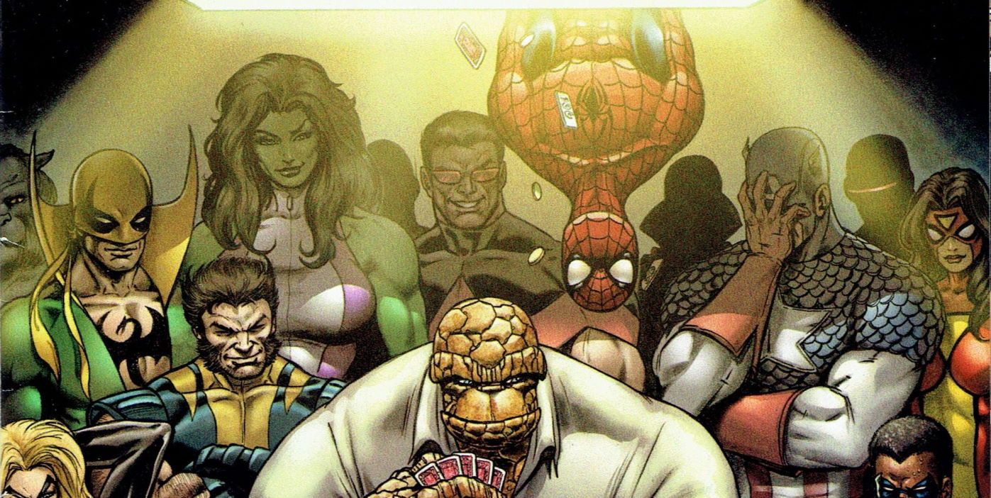 Spidey attributes his poker playing prowess to two things. First, his full head Spider mask makes it difficult for other players to see his facial expressions and spot his tells. Second, his famous Spider Sense grants him a special insight into when the other players are bluffing -- possibly because his senses may interpret this as an 'attack' on his financial well-being. Using these advantages, Spider-Man manages to keep a healthy lead over the other heroes. While the stakes are initially low ($20 per player), things heat up when Daredevil and Spider-Man villain Kingpin crashes the party to beat the heroes at their own game. He offers each player $50,000 just so he can sit in and win back his money (and their money). Spidey detects Fisk is telling the truth, and convinces the other heroes to let the Kingpin play a few hands.