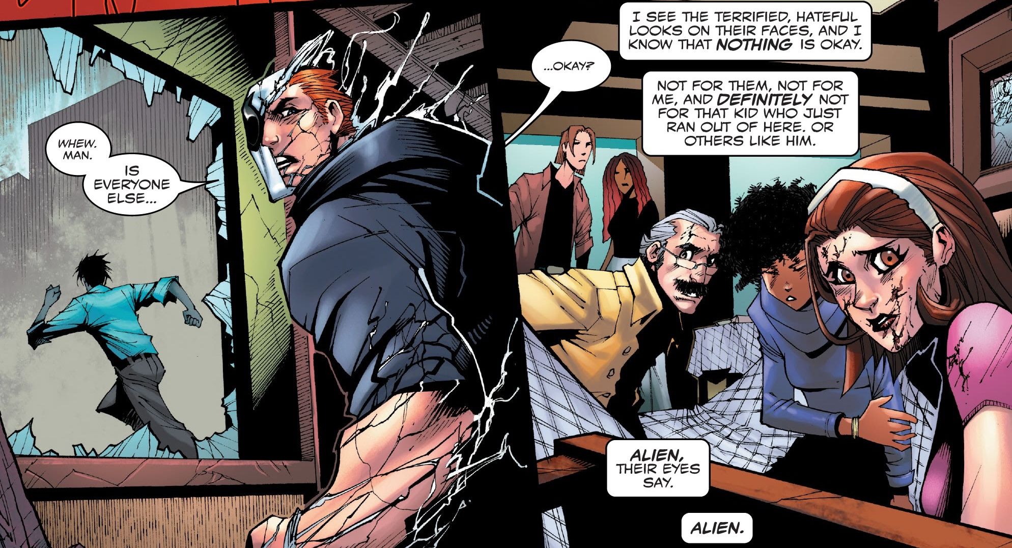 Basically, this means that there are now more symbiote-bonded humans in the world than ever before, and it's essentially a whole new race of people in the Marvel Universe. Likewise, Flash is seen trying to protect a young man and his symbiote from the group known as the Guardsmen, who claim that they've been authorized to take down any and all symbiotes they can find, being seen as threats. However, this young man begs for his symbiote to not be taken away from him, as it was serving as a cure for his terminal illness. Regardless, Agent Venom takes note of the fear people have after he saves the kid, and it's on par with the levels of fear the X-Men and mutant race have dealt with for years (despite now having their own island nation).